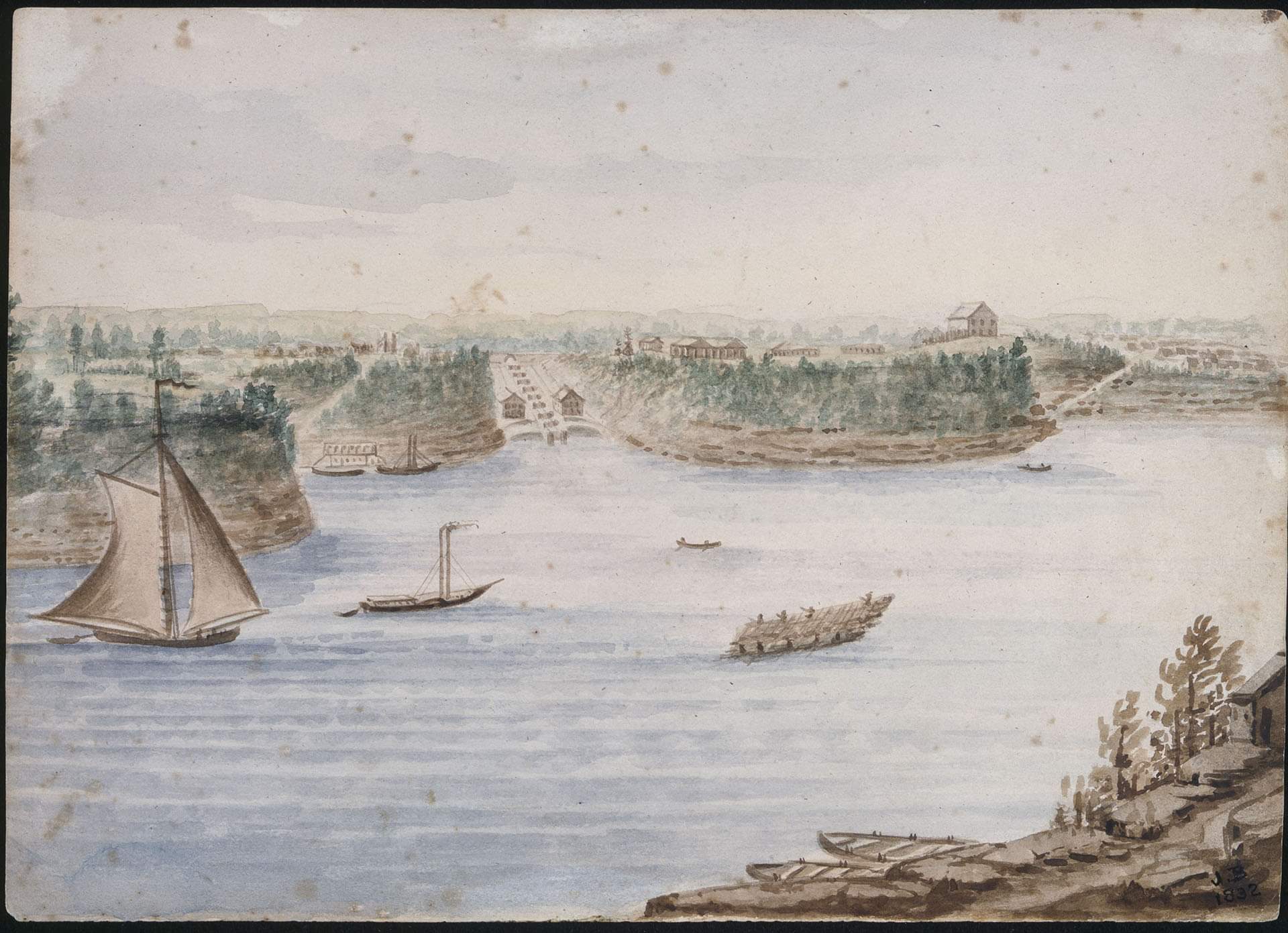 ![The Rideau Canal was expected to be complete by August 12, 1830. 80 kilometers of the canal from Bytown were navigable as of September 1830, but it would not be until May 29, 1832 that the full length of the Rideau Canal would be open for traffic. [Source: Bytown Museum; Ottawa Locks, Rideau Canal. John Burrows fonds, Library and Archives Canada, accession number 1979-12-12, C-092930.]](photos/Entrance%20Bay%201832.jpg)